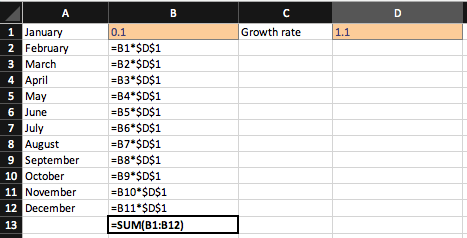 For growth formula in excel, y =b* m^x represents an exponential curve where the value of y depends upon the value x, m is the base with exponent x, and b is a . This article is talking about ways to calculate the average annual growth rate (aagr) and compound annual growth rate (cagr) in excel. So i am trying to build an excel model where every month the numbers will increase exponentially to a point at the end of the year which is . Convert between continuous and exponential growth. The excel growth function calculates the predicted exponential.